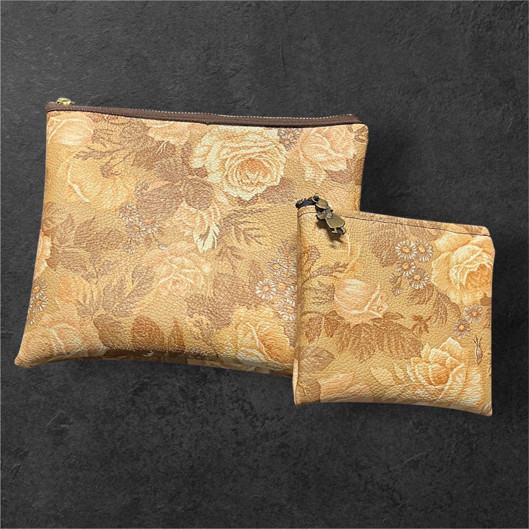 花柄 合皮ポーチ2点セット 上品フラワー 大人ナチュラル