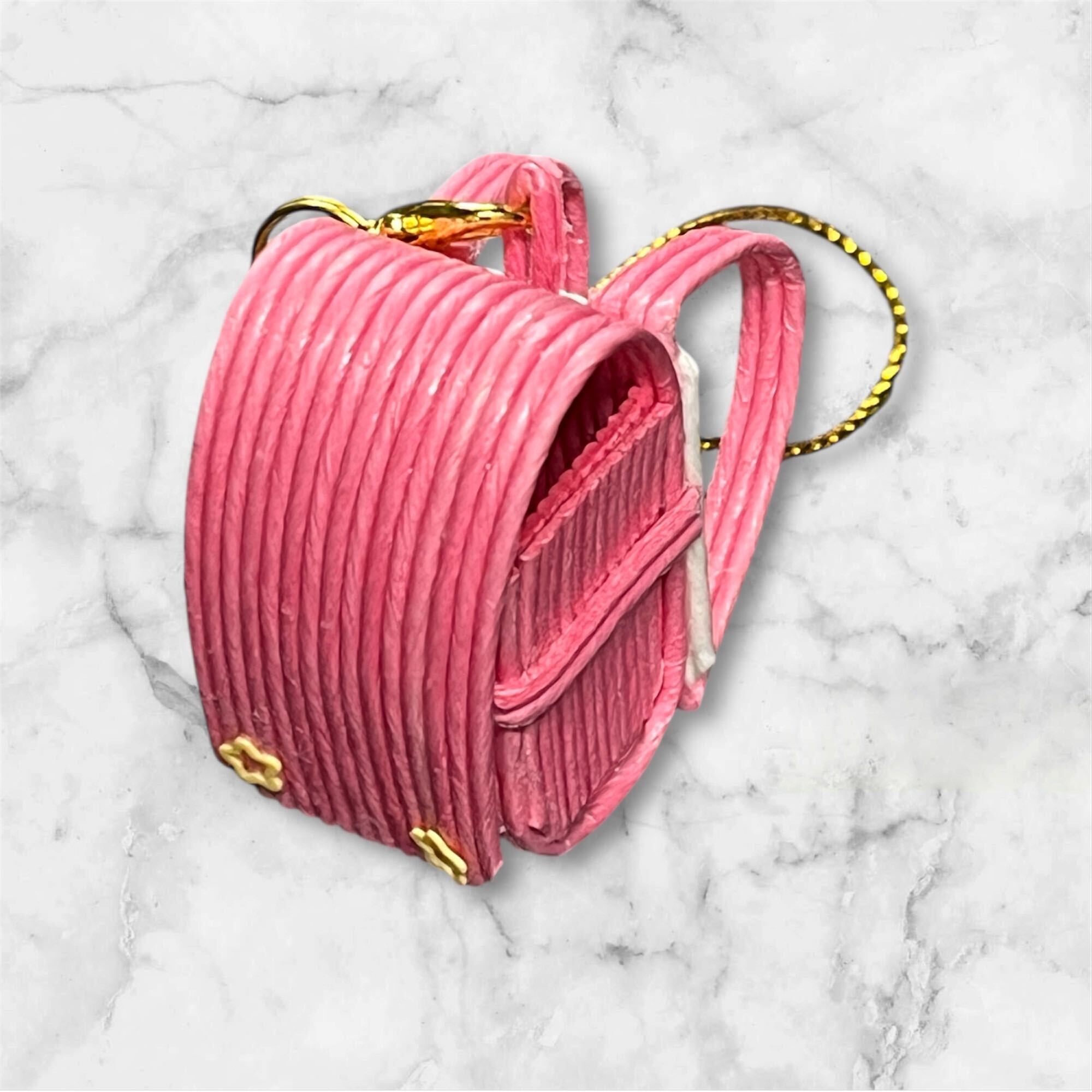 エコクラフトで一つひとつ丁寧に制作した、ミニチュアサイズのランドセル型ストラップ5個セットです。