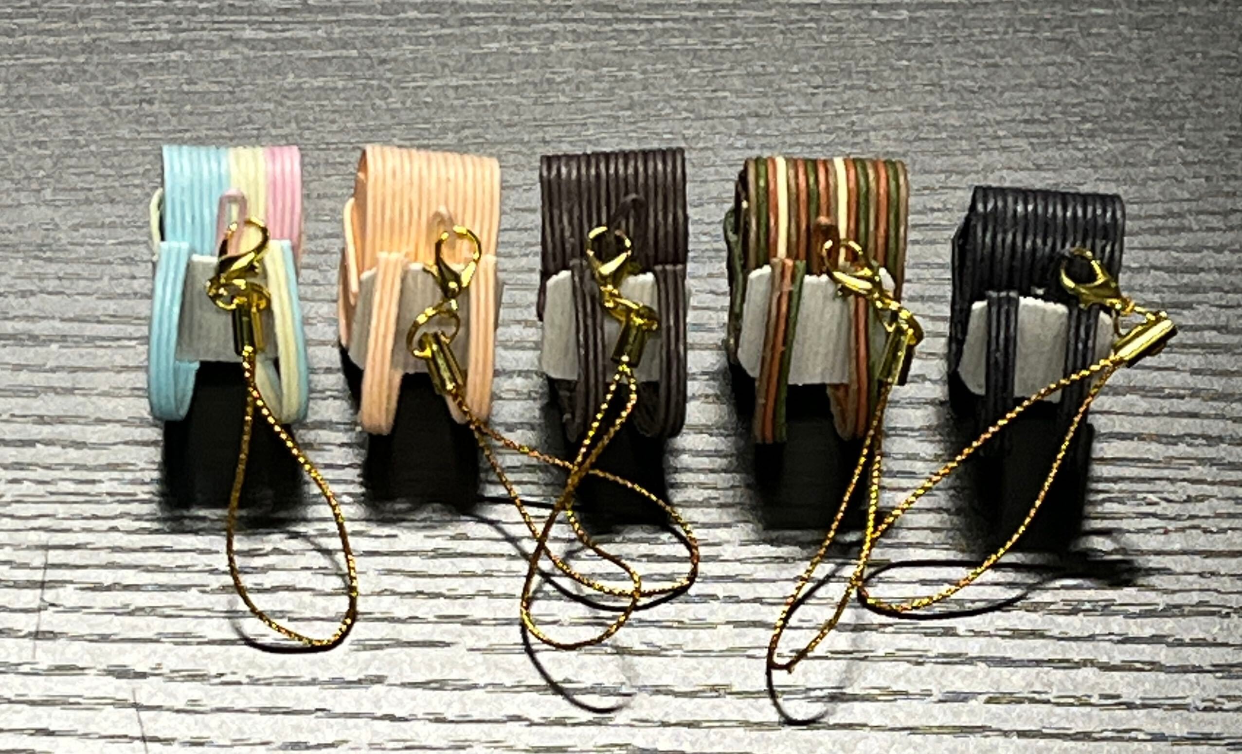 エコクラフトで一つひとつ丁寧に制作した、ミニチュアサイズのランドセル型ストラップ5個セットです。