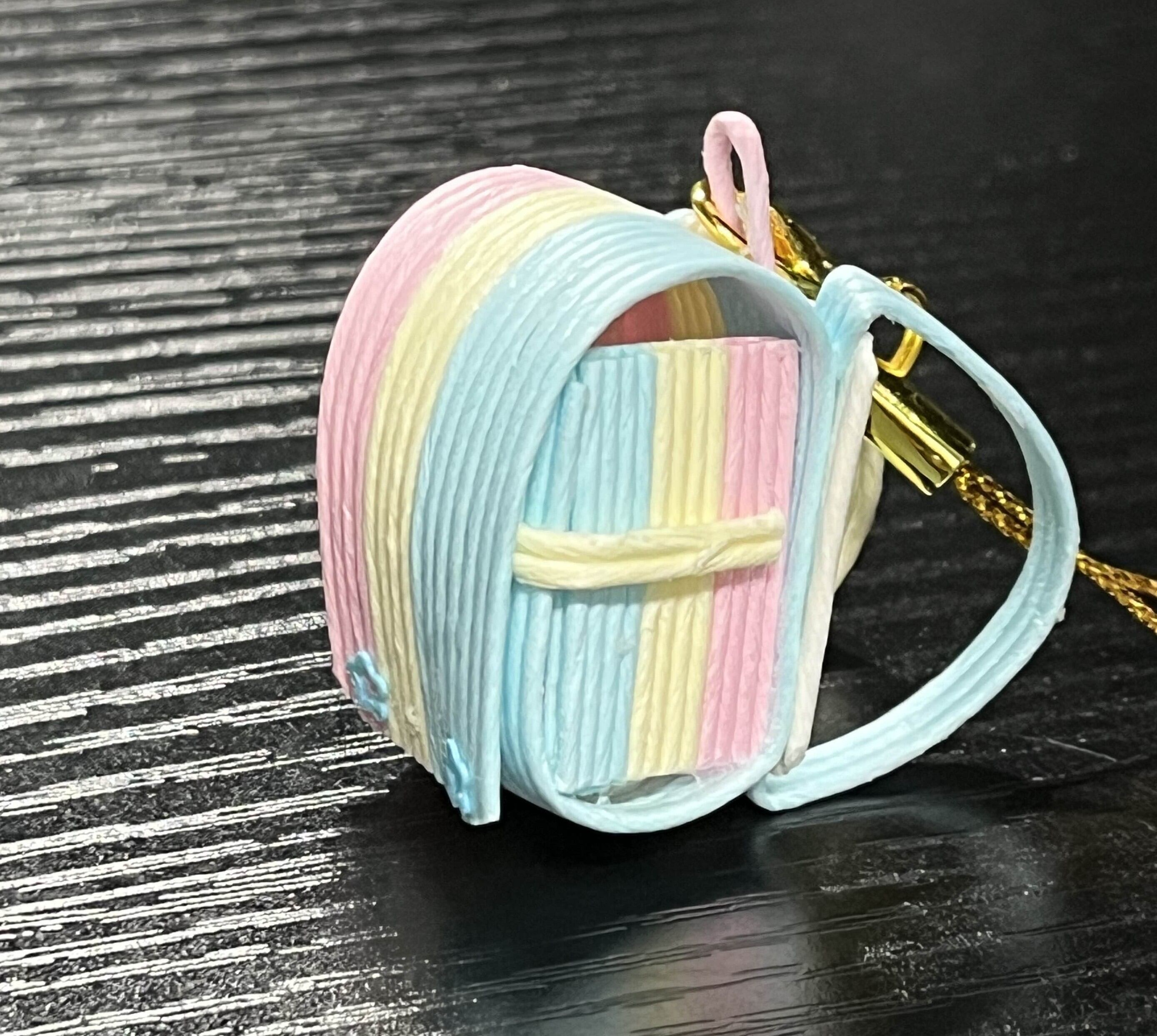 本物のランドセルを小さくしたような立体感と、カラフルで可愛らしい配色がポイント。