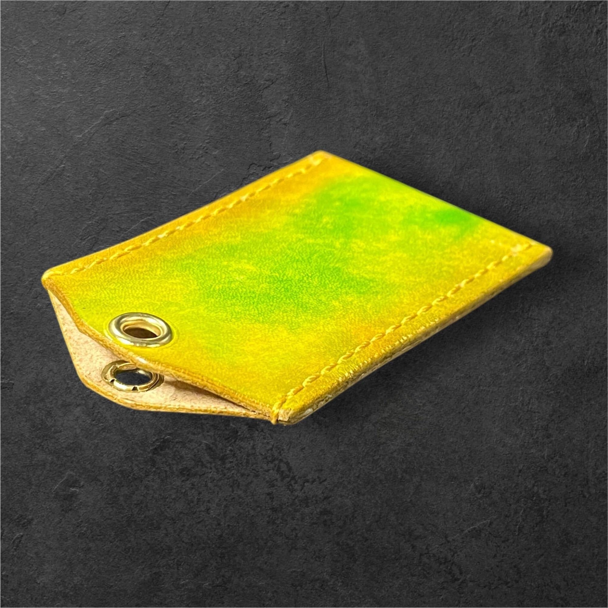 レザー お守りケース(イエロー&グリーングラデーション サイズM) ハンドメイド