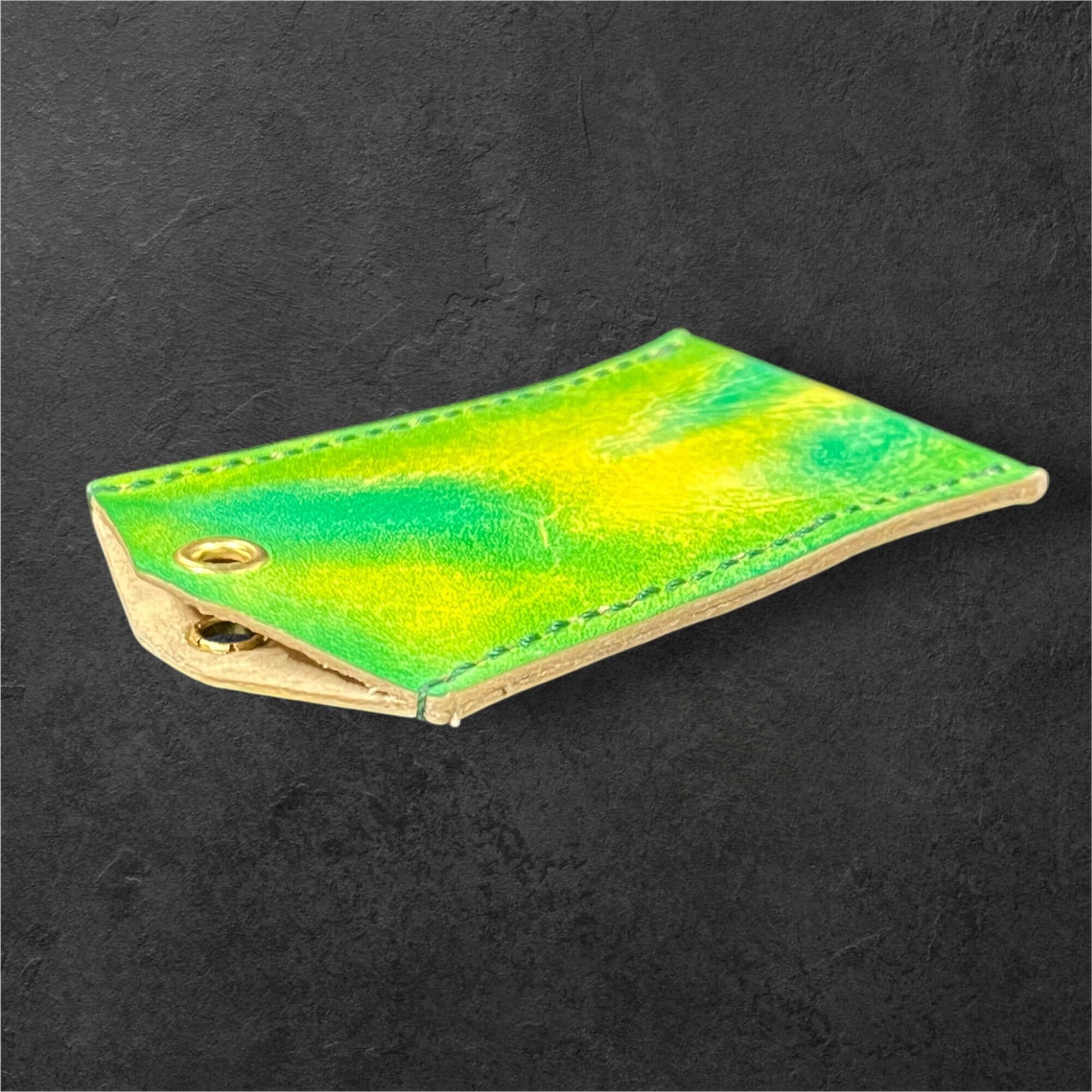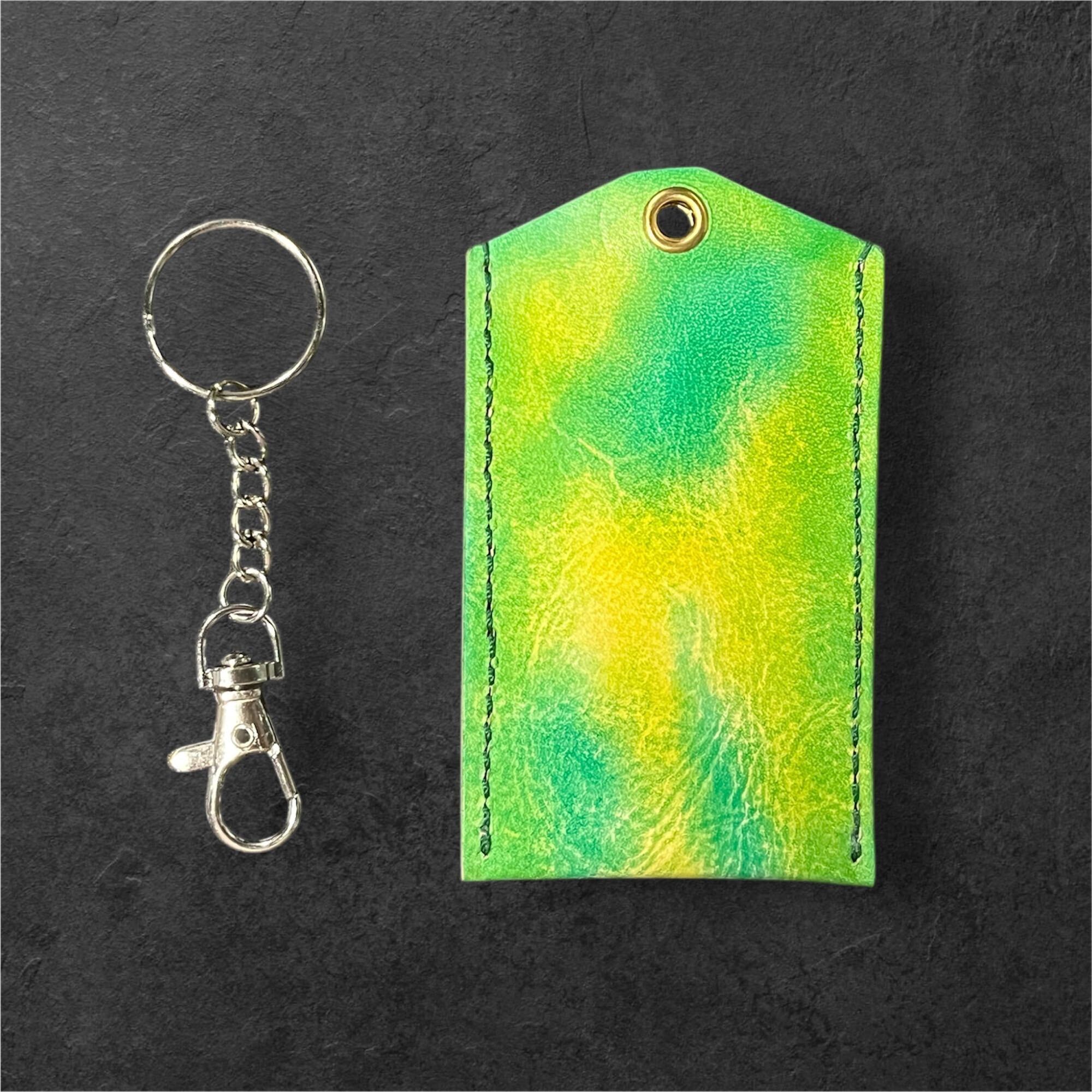 レザー お守りケース(グリーン&イエロー グラデーション サイズL) ハンドメイド