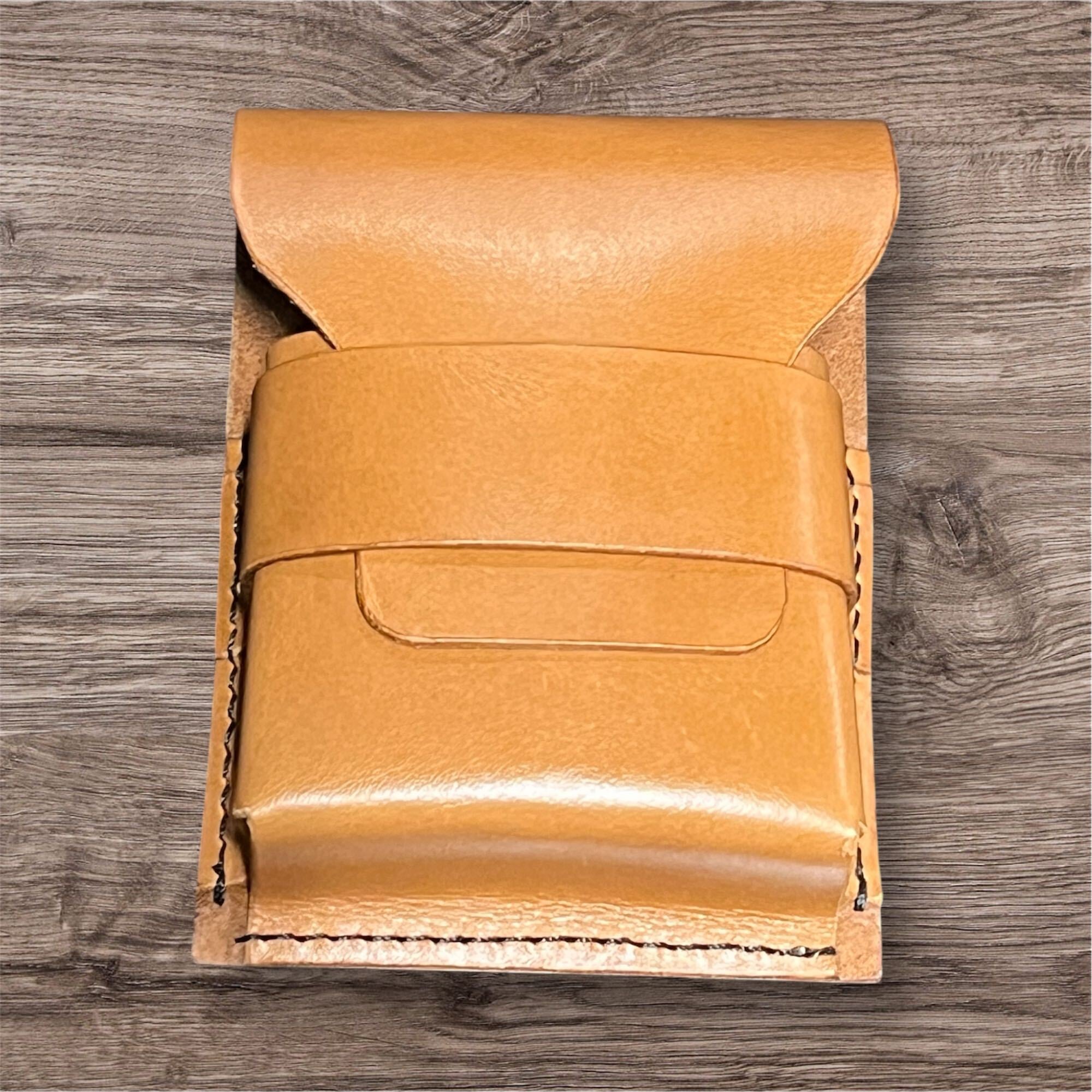 ライター収納付き ヌメ革タバコケース|コンパクトで持ち運びやすいブラウンレザー