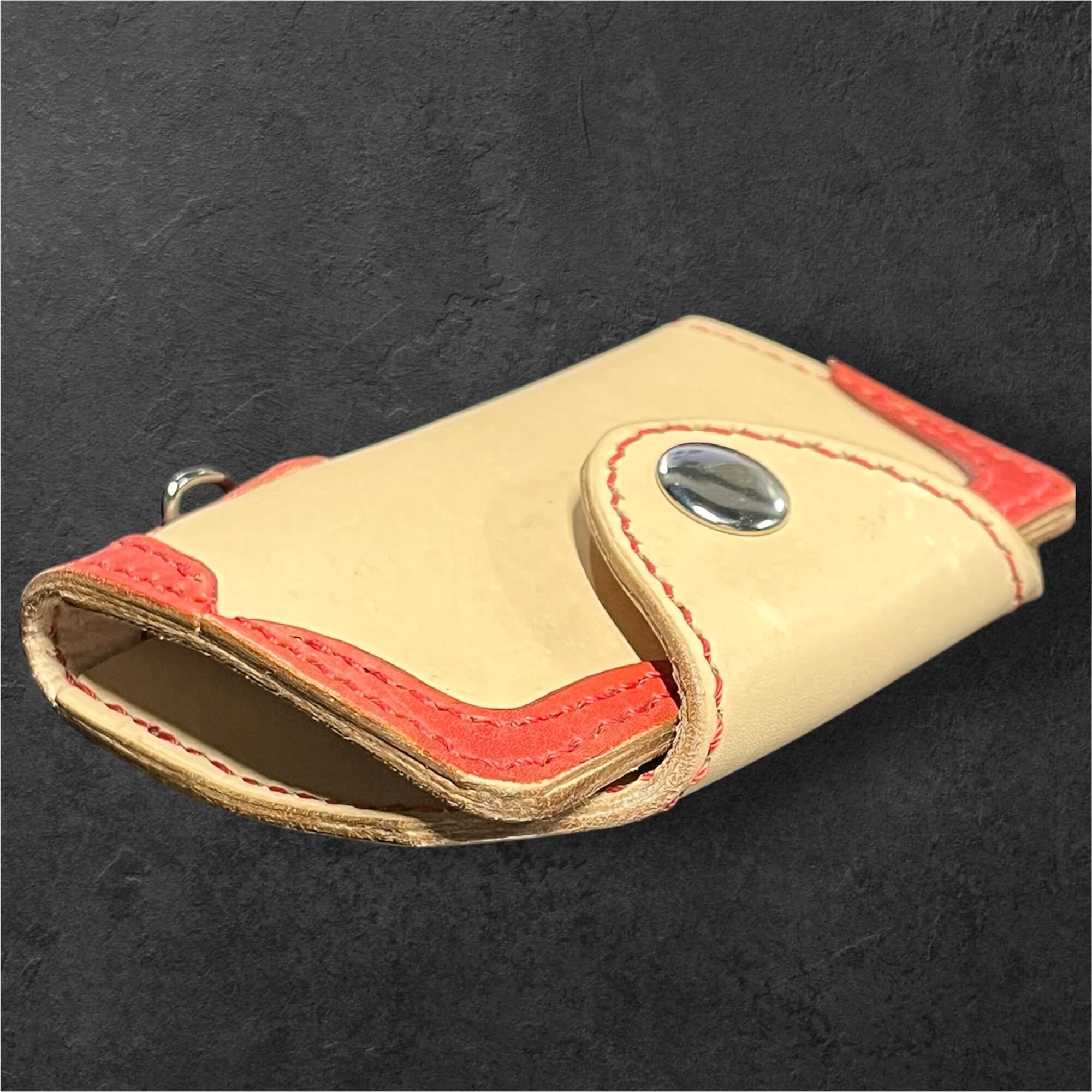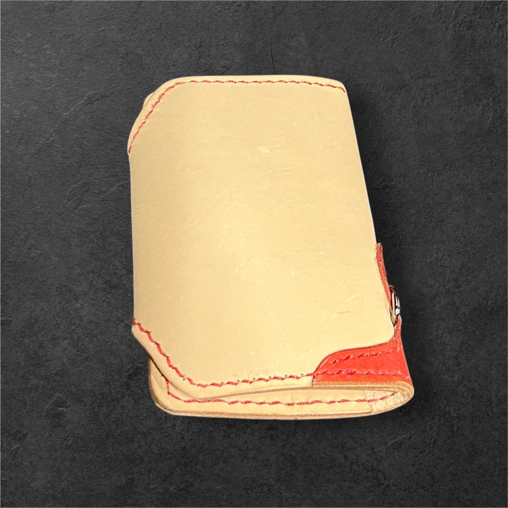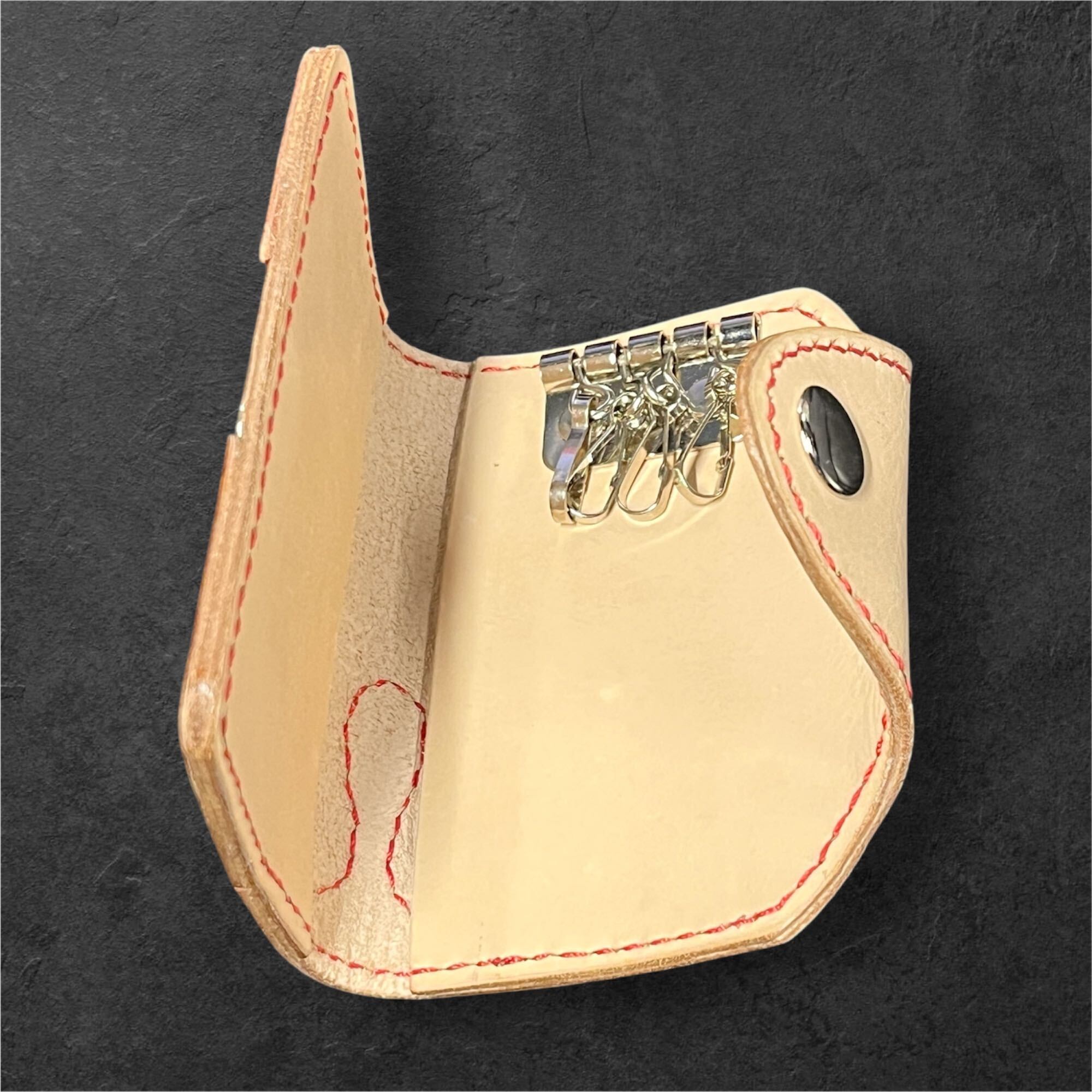 ヌメ革 4連キーケース(飾り赤)|ナチュラル