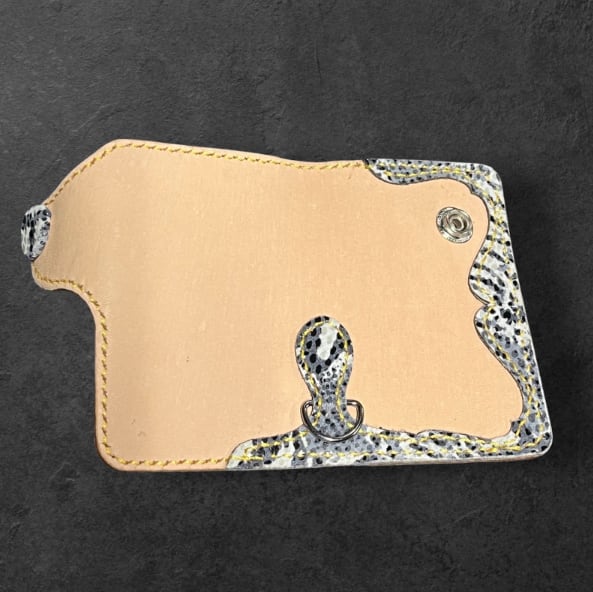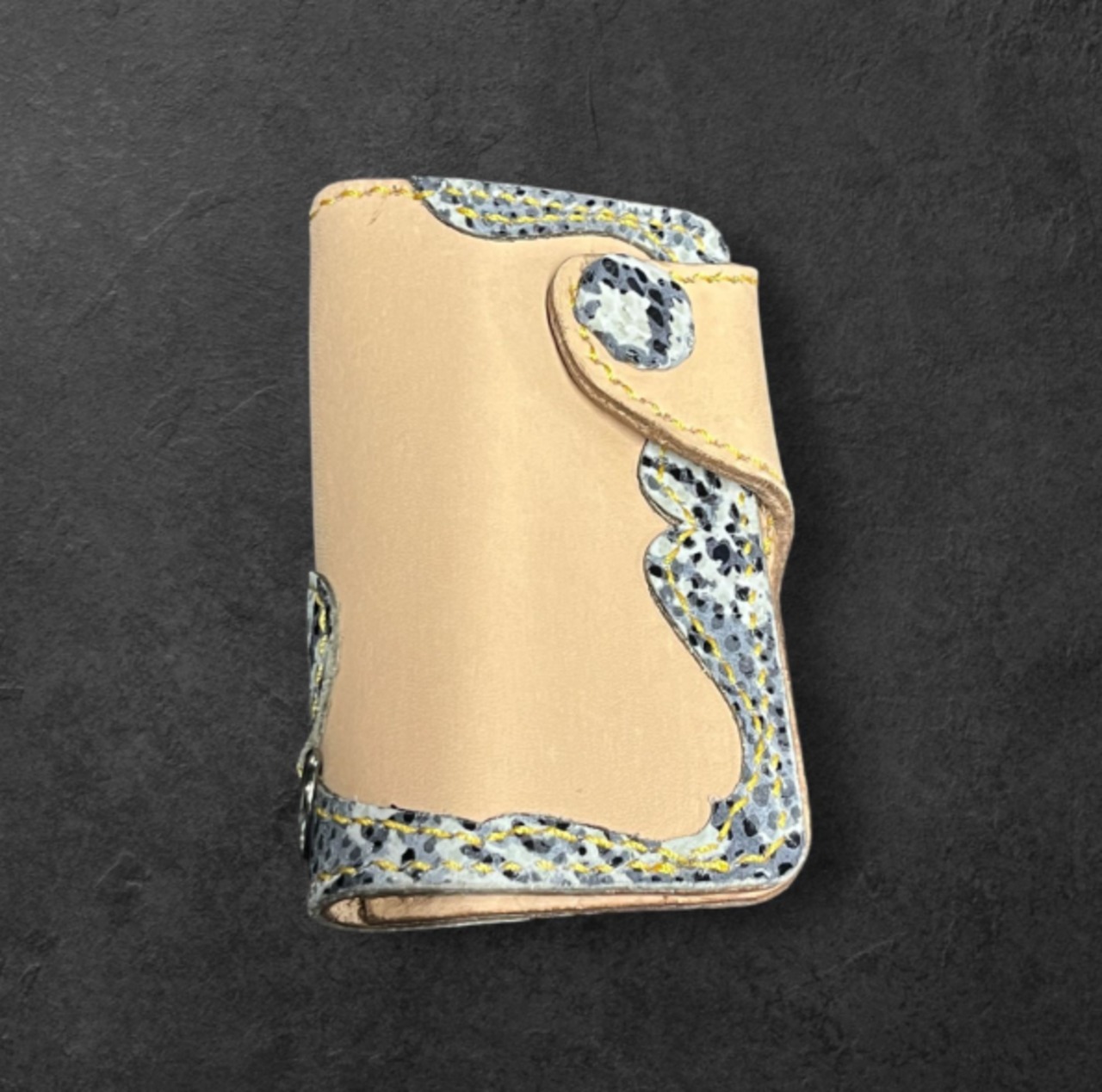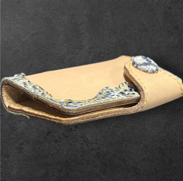 ・ヌメ革 × 斑点模様の飾りの個性的な切り替えデザイン