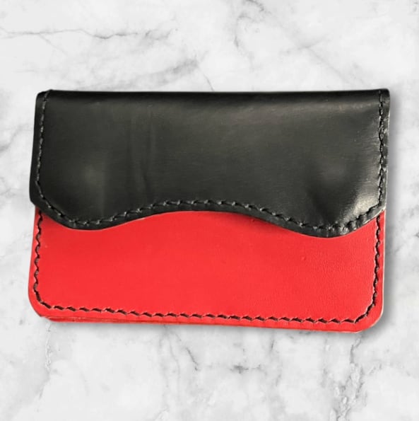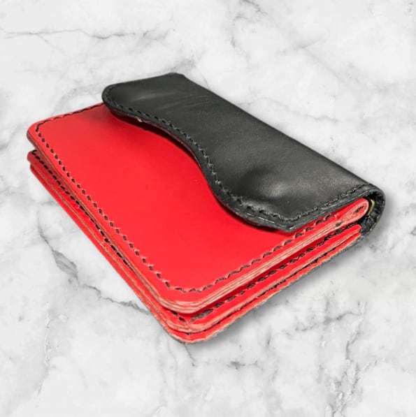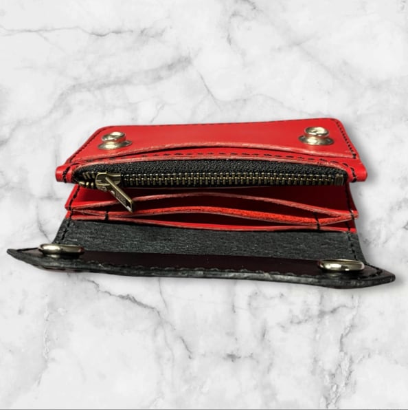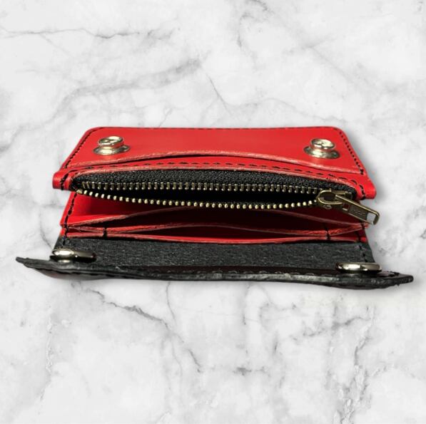 黒と赤色のレザーを使用した、コンパクトなミニウォレットです。