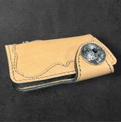 やさしいブラウンの色味と、存在感のあるシルバーコンチョを組み合わせ、シンプルながらも革好きに刺さるデザインに仕上げました。