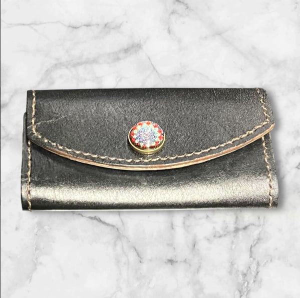 落ち着いたブラックレザーを使用した、コンチョ付きのハンドメイド4連キーケースです。