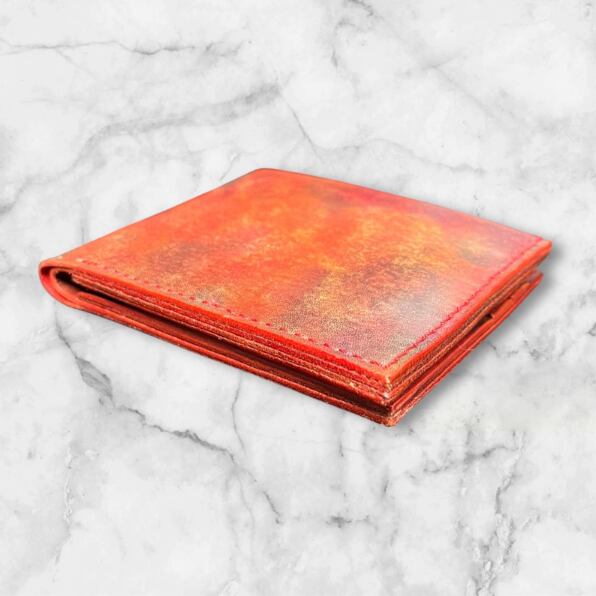 二つ折り財布 赤茶グラデーション手染め