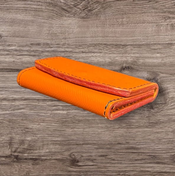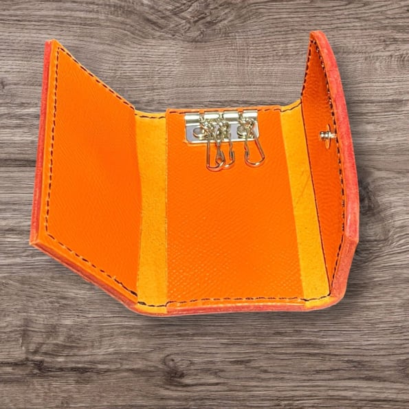 発色の良いオレンジカラーの本革を使用した、3連タイプのキーケースです。