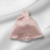 ドールドレス…ピンクのサテン生地。後ろスナップボタンどめ。胸元にビーズを縫い付けています。スカート部分は一部縫いつけてあります。
