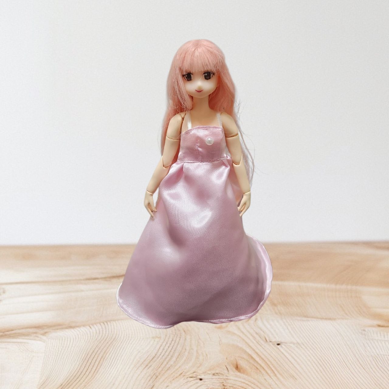 1/6ドール服、ピンクのサテンドレス。22㎝ドール向け。画像1.2枚目はドール着用例。(リカちゃん・ピュアニーモボディ使用)
