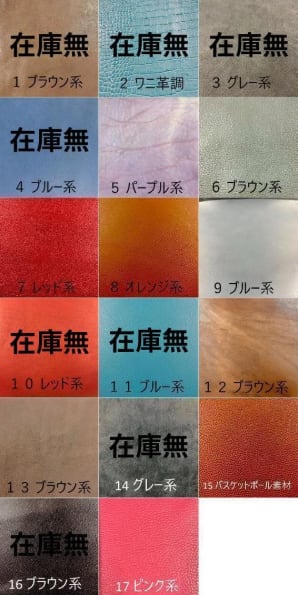 黒・茶・赤・青・緑等、色見本の番号をご指定下さい。