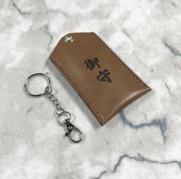 レザー お守りケース(ブラウン サイズL) ハンドメイド / 文字入れ可