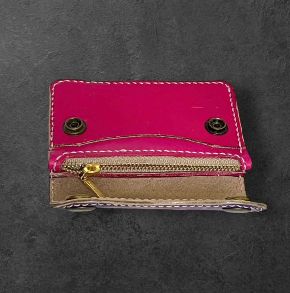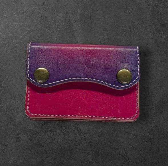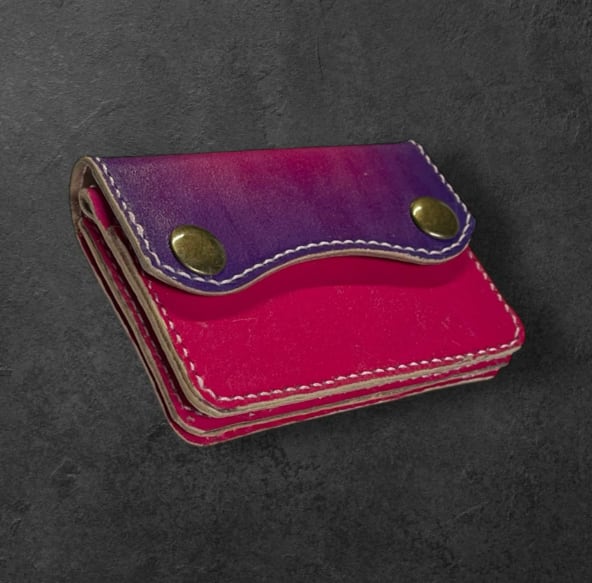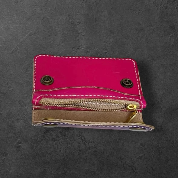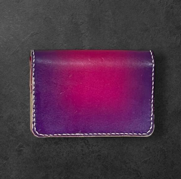 ピンクと紫の美しいグラデーションが特徴の本革ハンドメイドミニウォレットです。