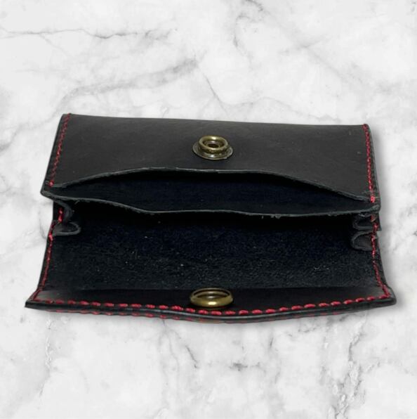 【就労福祉施設制作】ハンドメイド レザー 名刺入れ ブラック シンプル