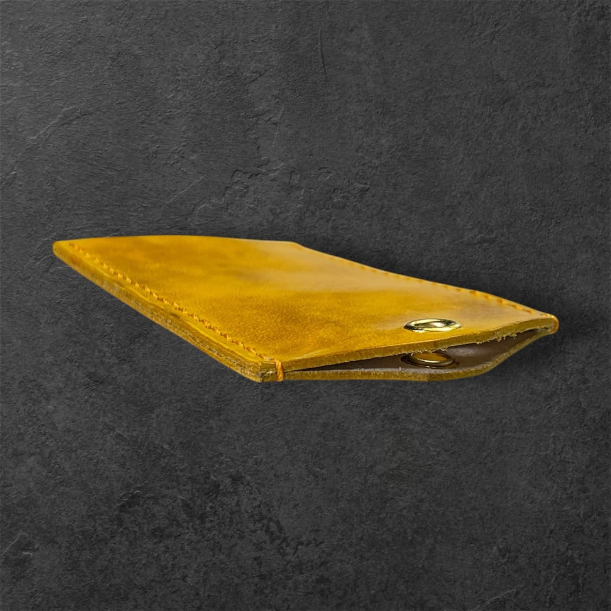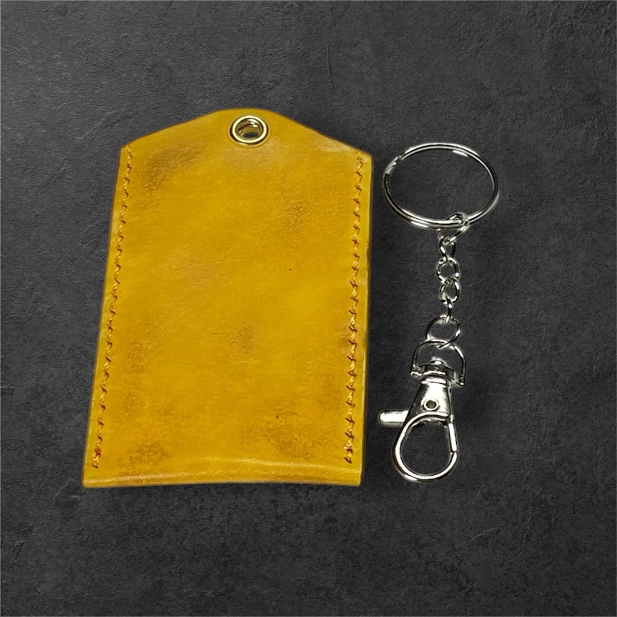 レザー お守りケース(黄色と茶色のムラ染めサイズL) ハンドメイド