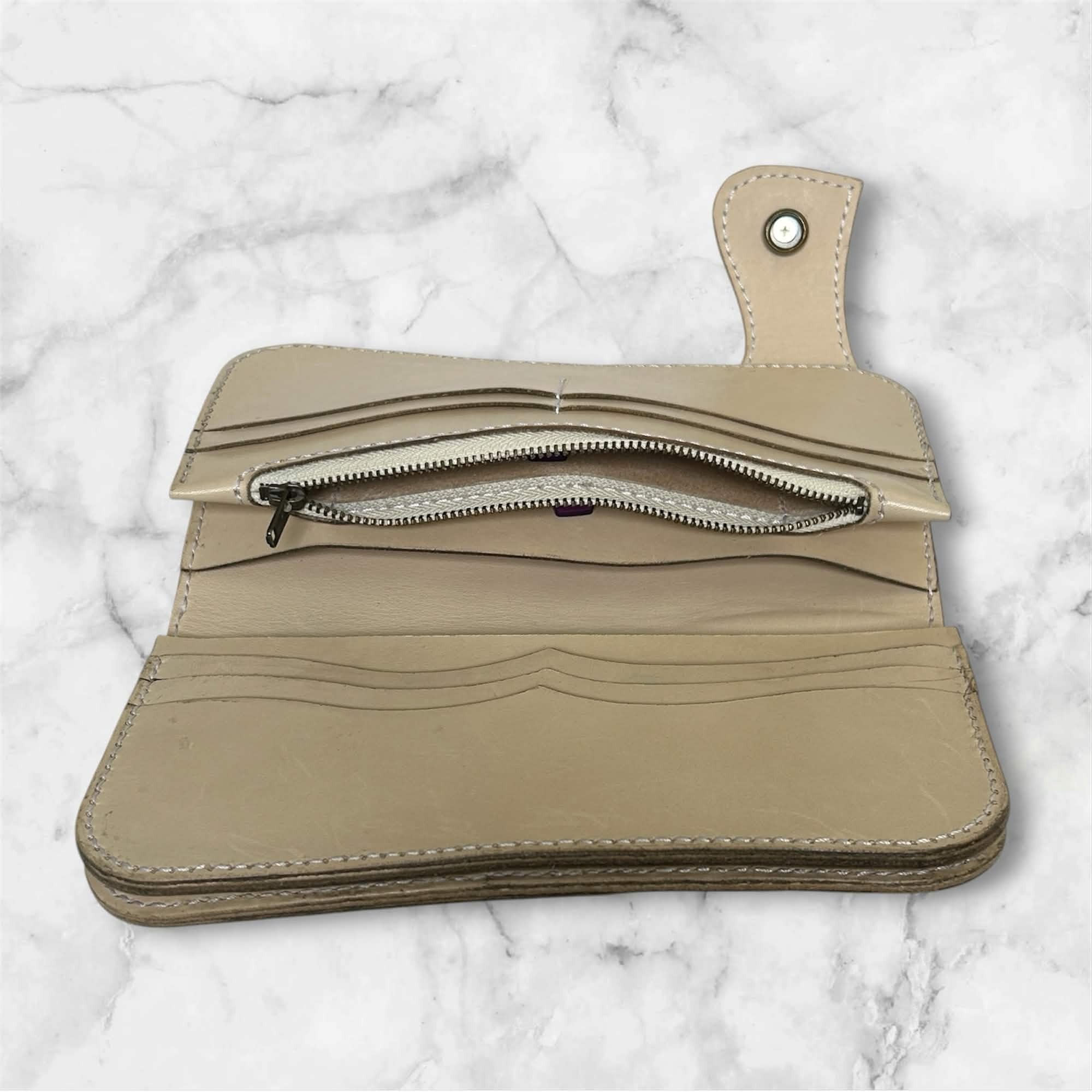 バングラデシュヌメ革のライダースウォレット(生成り)