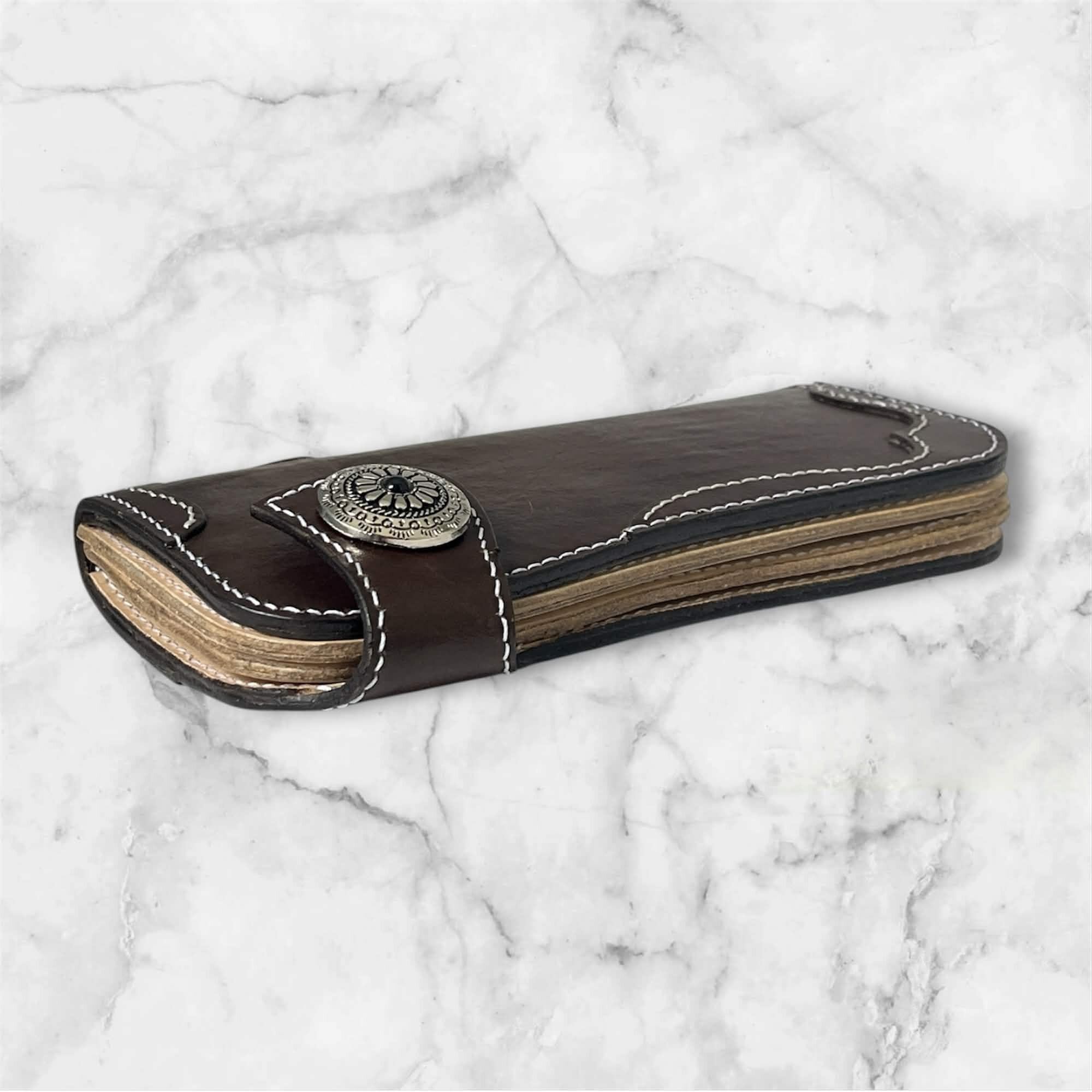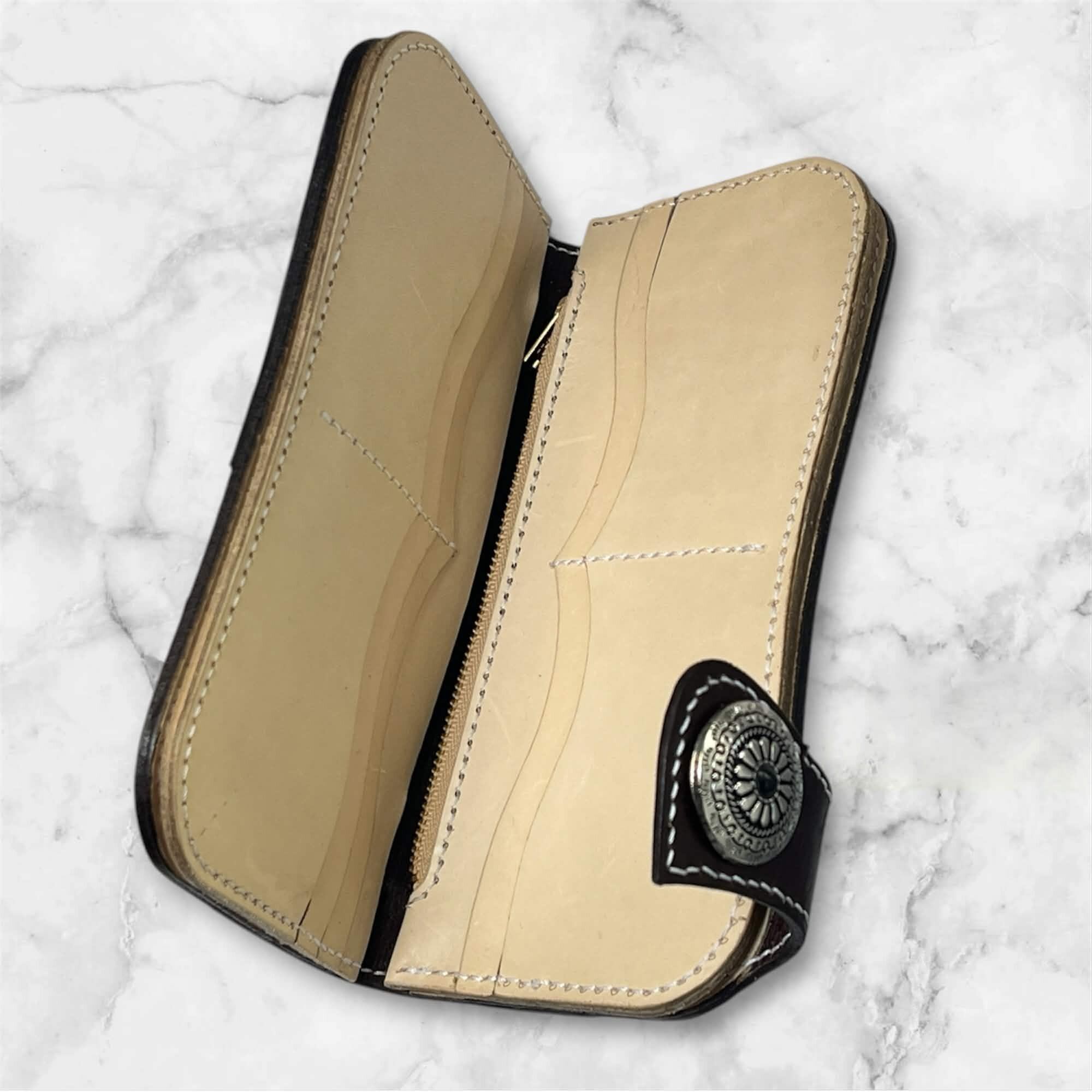 バングラデシュヌメ革のライダースウォレット(茶色)