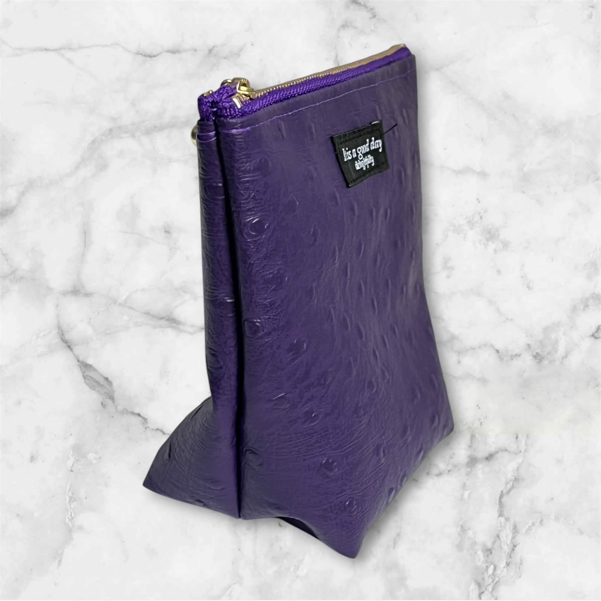 上品なパープルカラーと、オーストリッチ風の高級感ある質感が魅力のポーチ2点セットです。