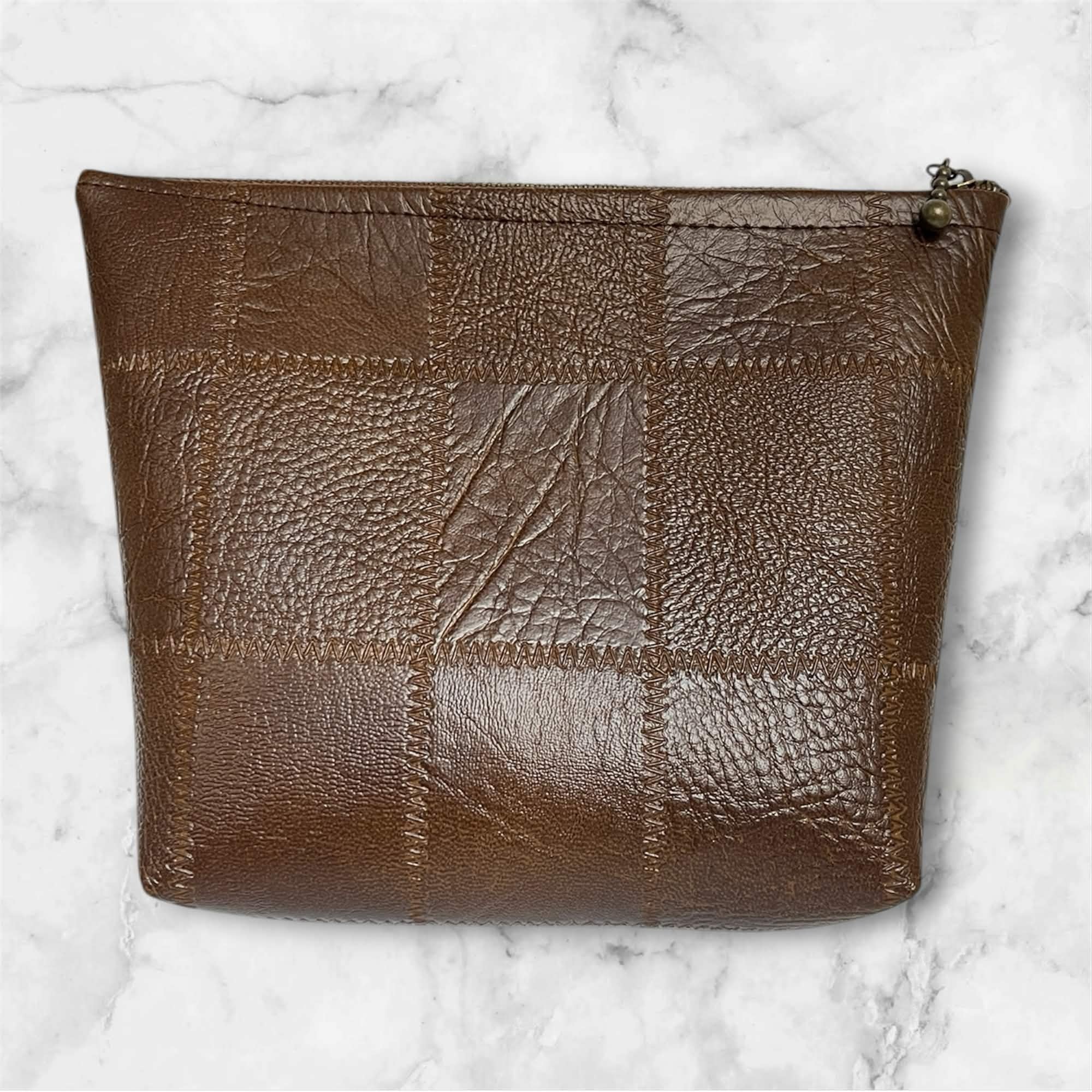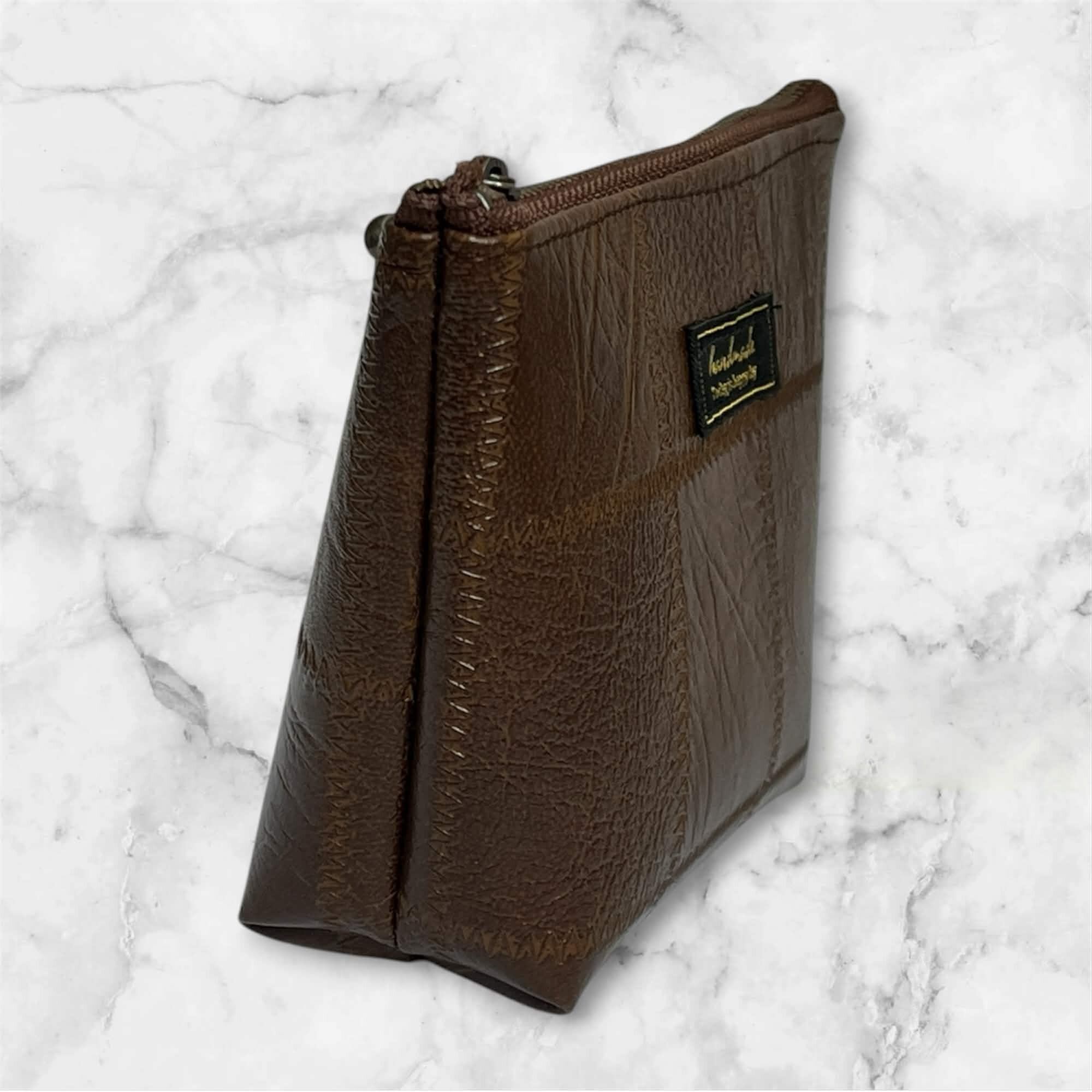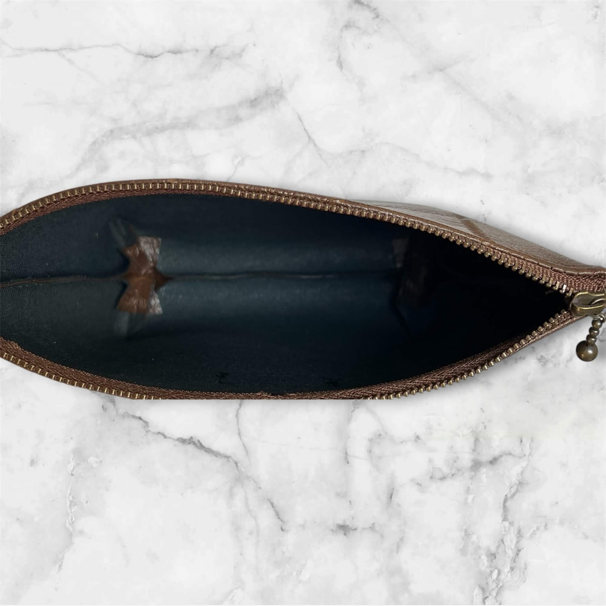 落ち着いたブラウンカラーが魅力の、フェイクレザーのポーチ2個セットです。