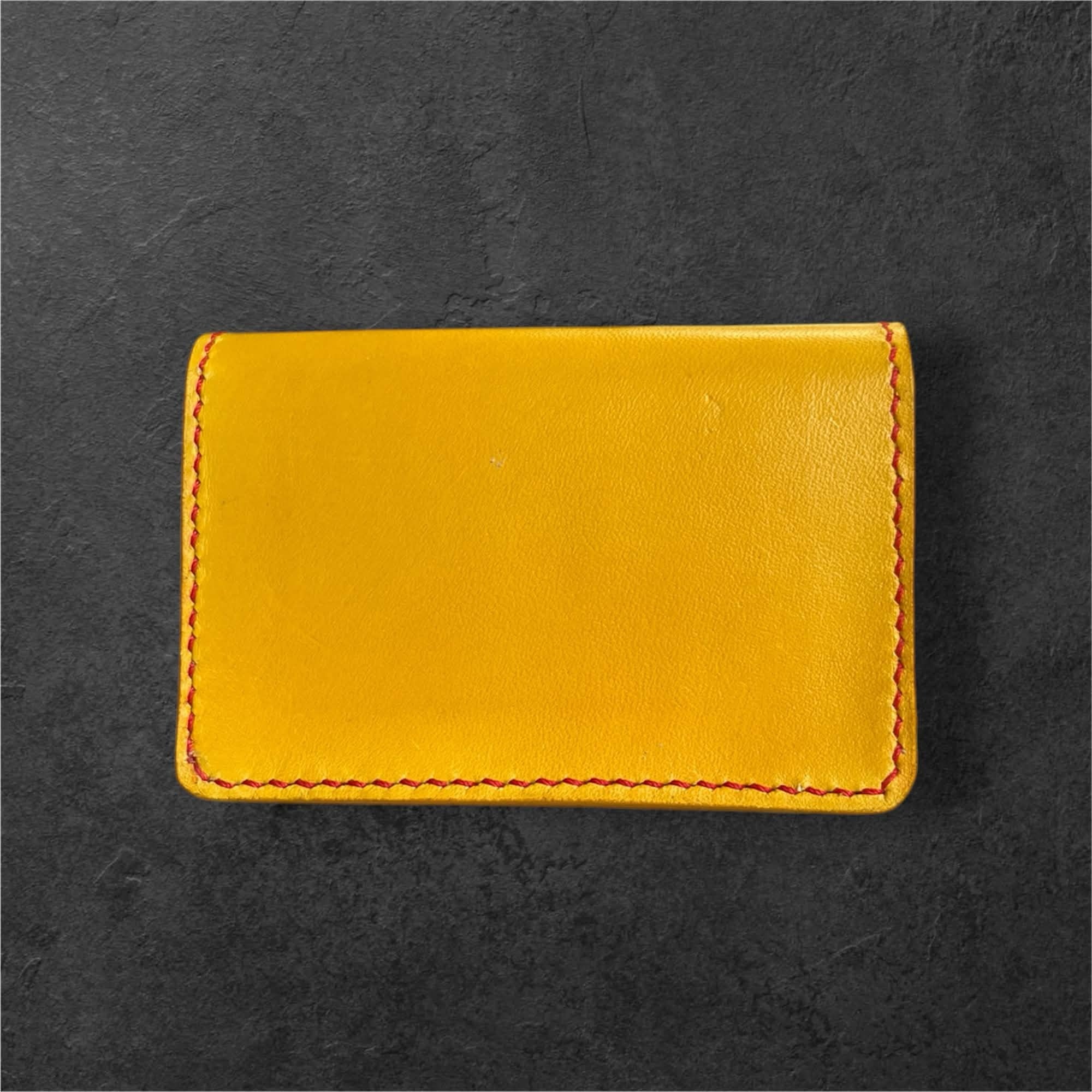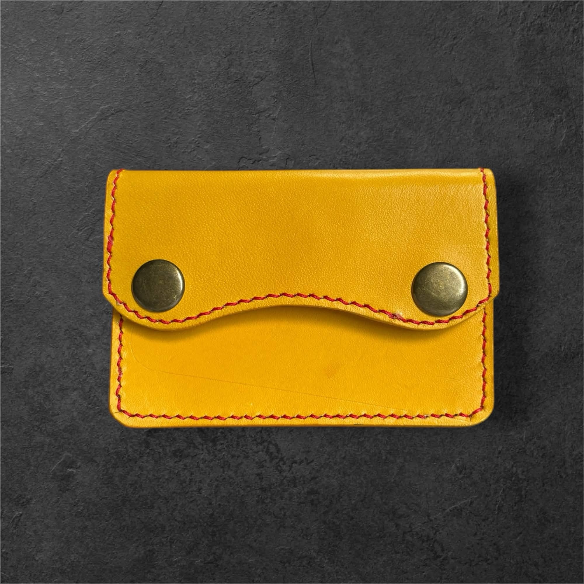 鮮やかな黄色が目を引く、本革仕様のミニウォレットです。