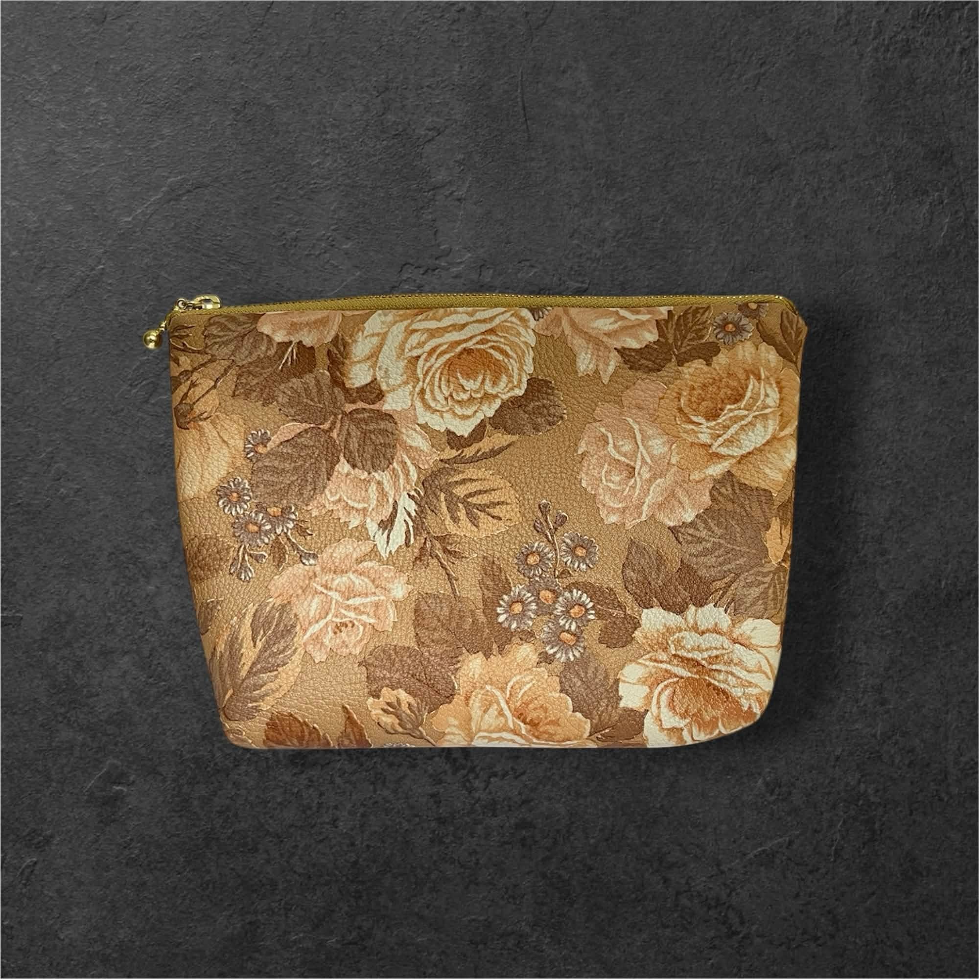 落ち着いた花柄デザインが魅力の、大人ナチュラルな合皮ポーチです。