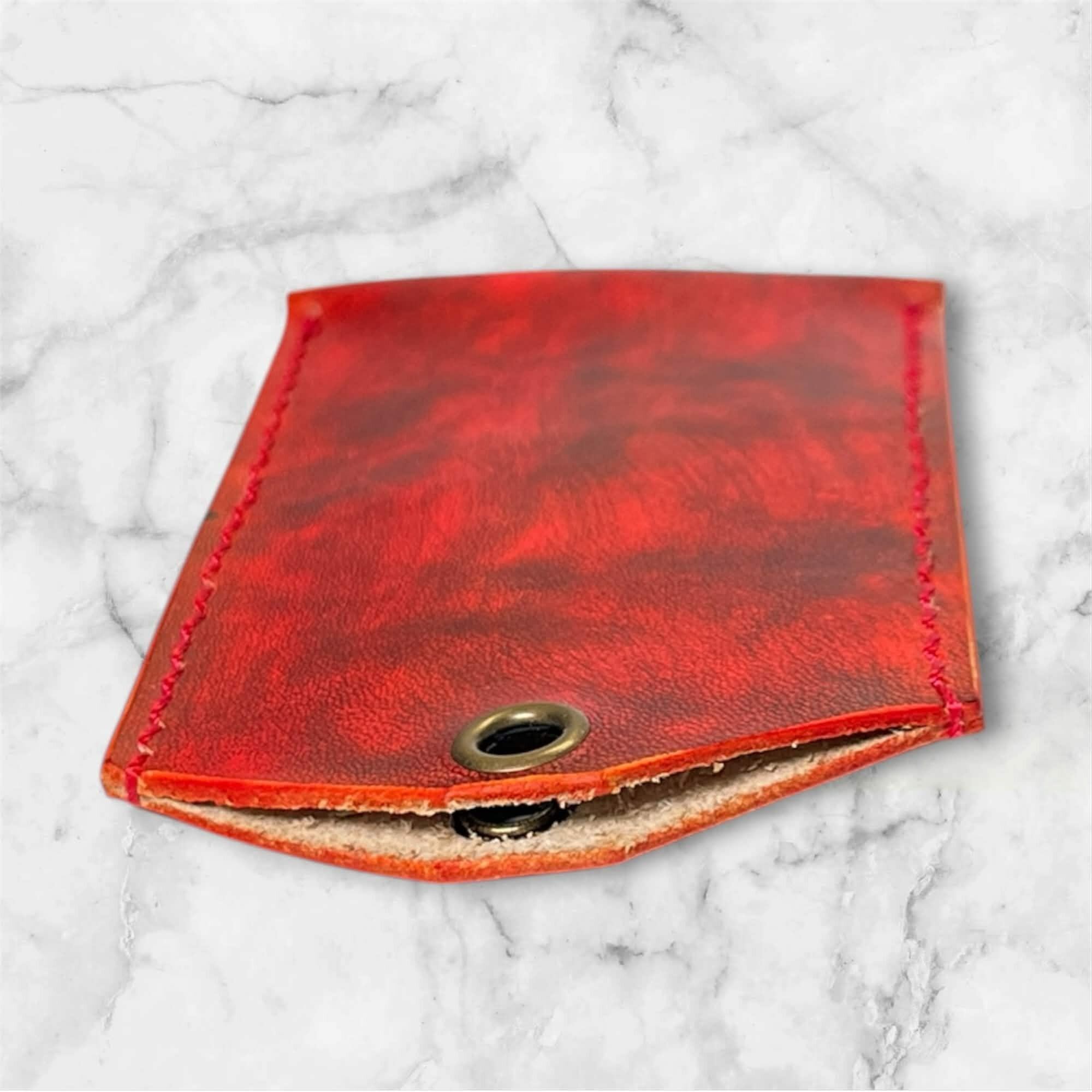 レザー お守りケース(赤と黒のムラ染めサイズL)