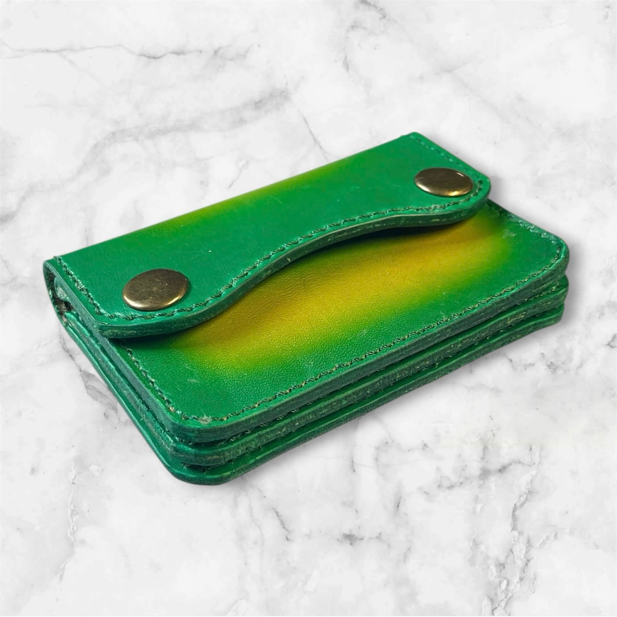 緑と黄色のグラデーションカラーのレザーのコンパクトミニウォレットです。
