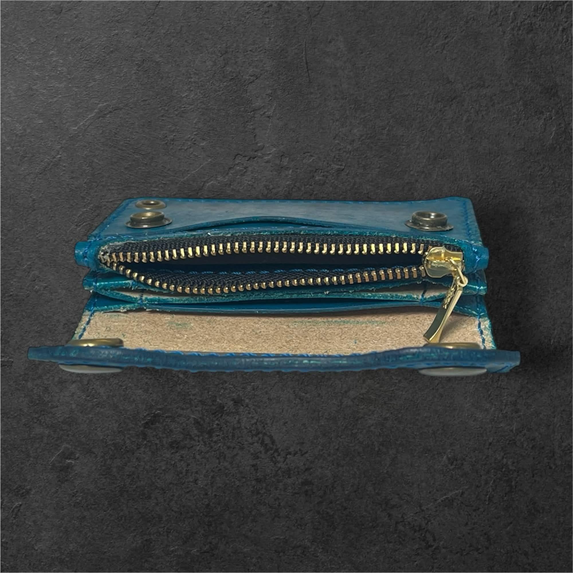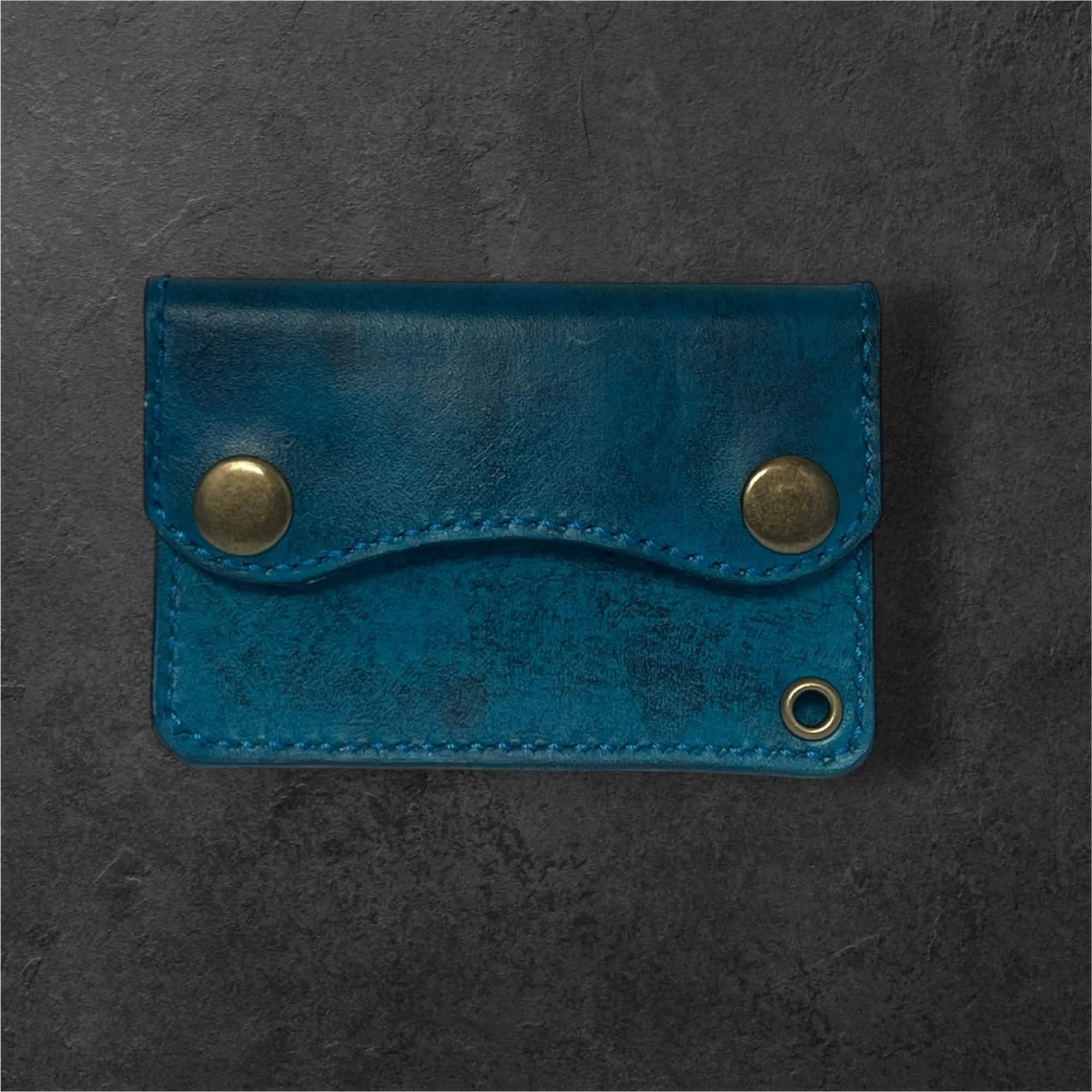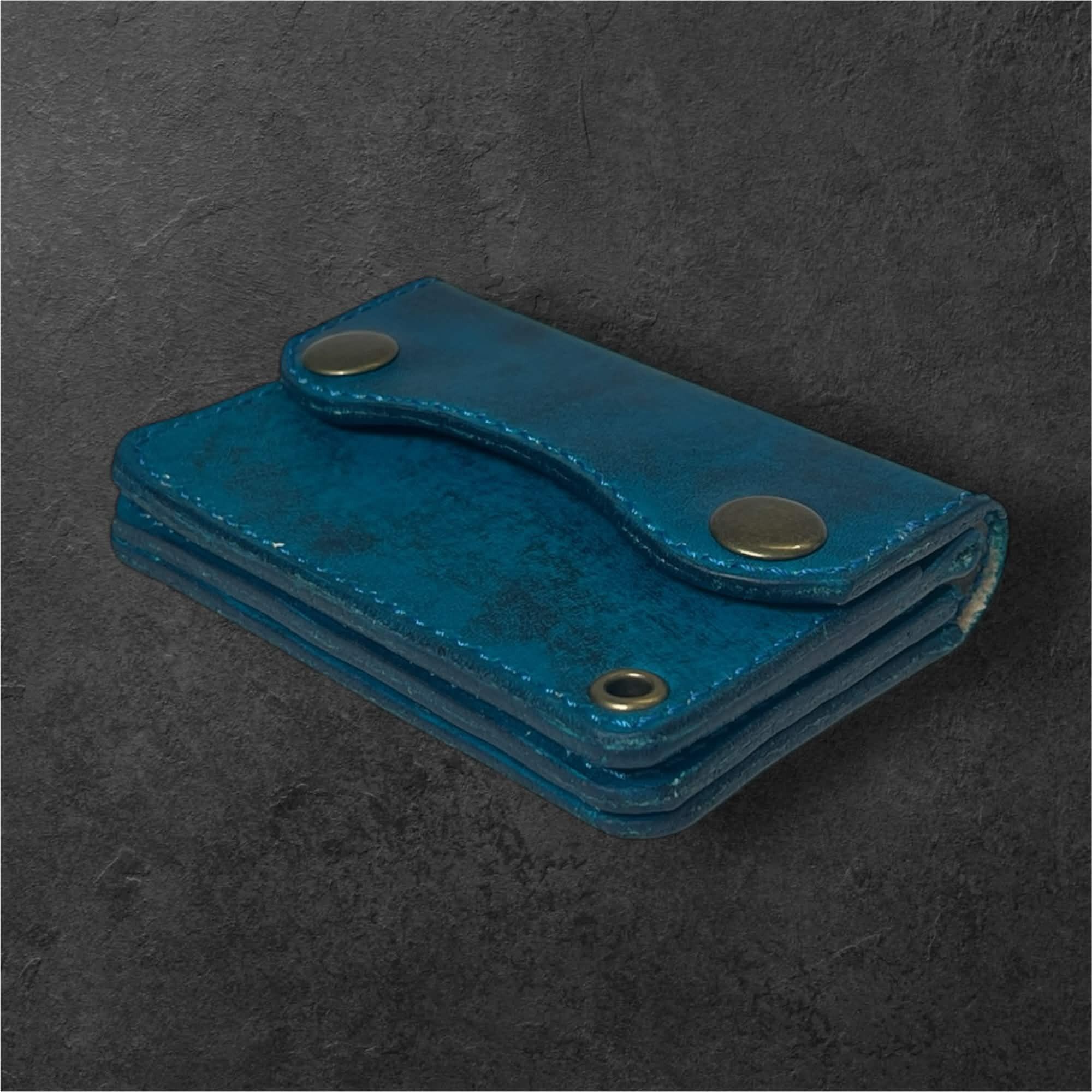 青と黒のグラデーションカラーのレザーミニウォレットです。